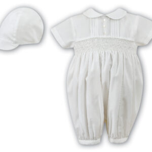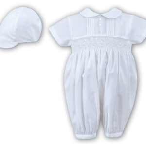 Sarah Louise Long Sleeve Romper & Cap – 002200QL White