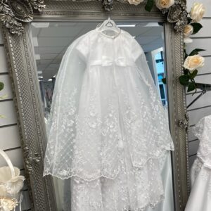 Sarah Louise Ceremonial Christening Dress, Cape & Bonnet – 001073S White