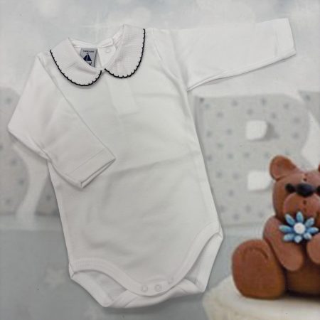 Babidu long sleeve vest with peter pan collar edged in navy (1188)