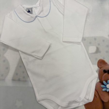 Babidu long sleeve vest with peter pan collar edged in pale blue (1188)